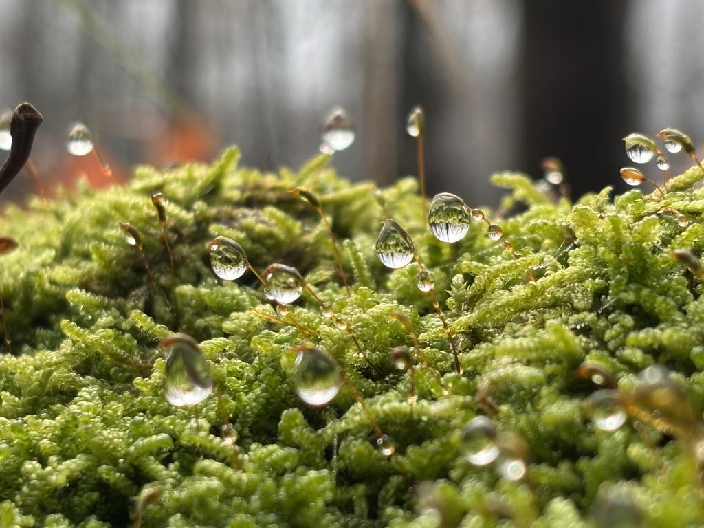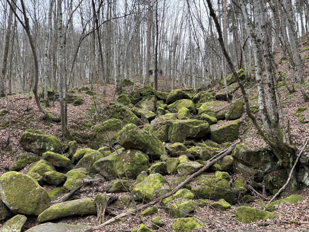 Погода сменилась как раз накануне: задул сильный ветер, который принес сначала дожди, а затем стужу. Лес затих и стал по зимнему мрачным. Но утром немного выглянуло солнце и это сильно понимало настроение. Я вышел на маршрут поздно: в начале одиннадцатого утра. Идти решил другим маршрутом и не прогадал: прямо от припаркованной в кармане дороги машине к перевалу вела уверенная тропа. И какая! Тропа некоторое время вела вдоль ручья, поэтому деревья и камни вокруг были сплошь покрыты зеленым мхом.