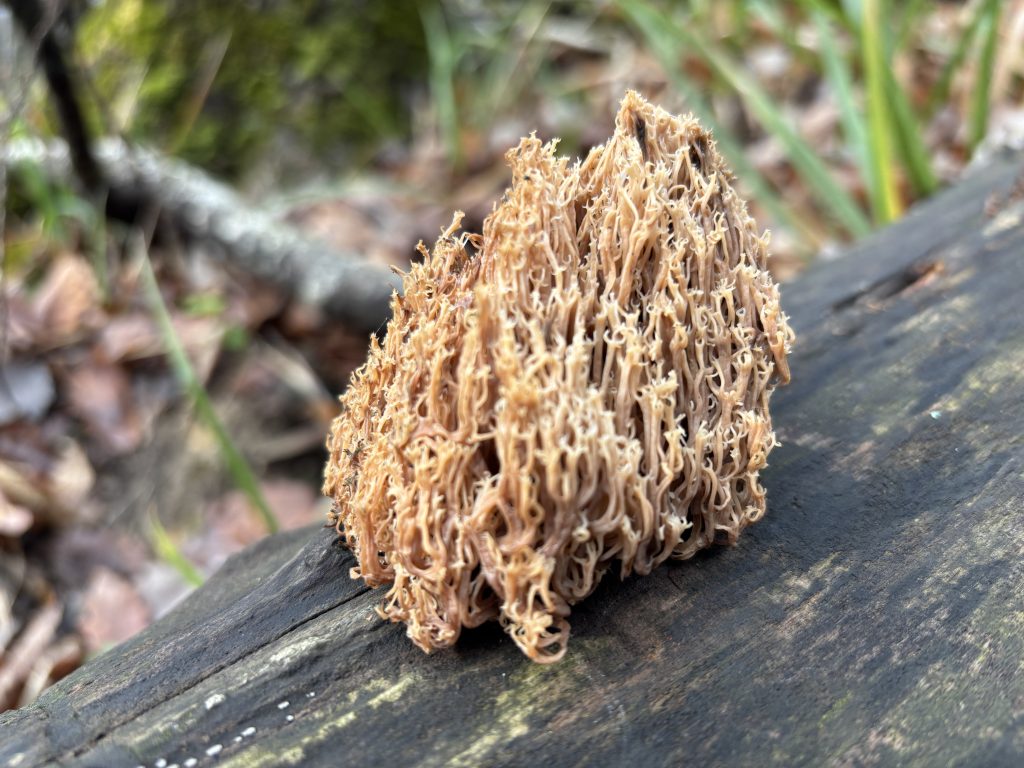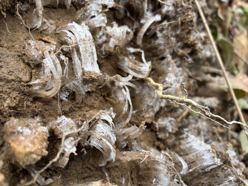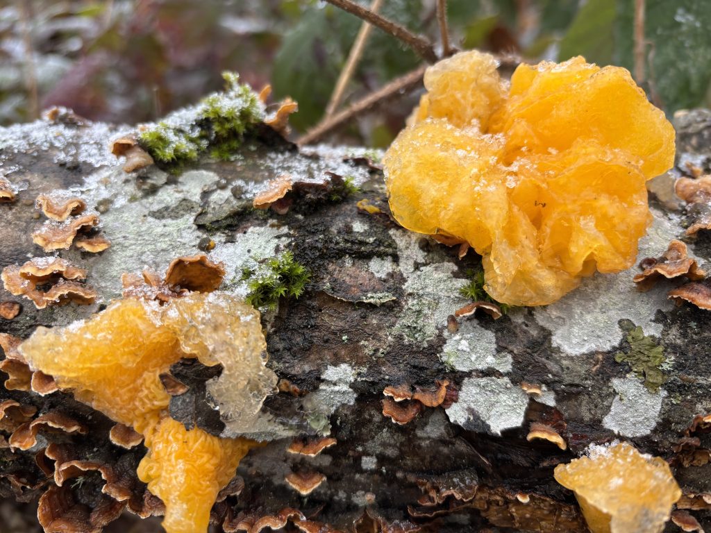 Первый в этом году ночной мороз уже сковал землю, поэтому грязи не было, а из земли росли причудливые снежные выросты, которые громко хрустели в лесной тишине. Вскоре начался затяжной подъем, а дорога запетляла по лесу. Идти на морозе было легко и вскоре я забрался на первую гору. До перевала было около пяти километров. Мороз сковал не только почву, но и все вокруг: росу на мхе, выросшие недавно грибы, воду. Это было по своему красивым, и хотя снега еще не было в такую погоду в лесу я еще не был.